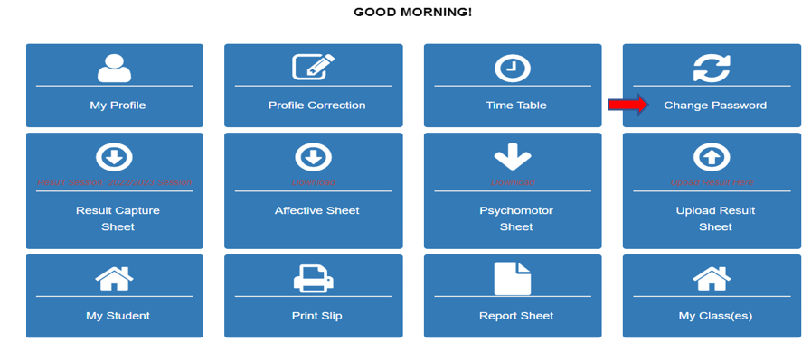 To change password Click CHANGE PASSWORD